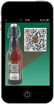Die Abbildung rechts zeigt symbolisch die eine Bierflasche der Woinemer Hausbrauerei mit QR-Code auf dem Rückenetikett.